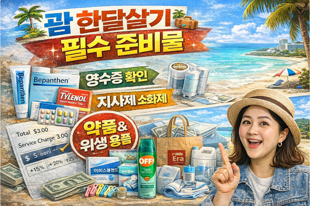 괌 한달살기를 계획하고 있다면 단기 여행과는 완전히 다른 준비가 필요합니다. 현지에서 모든 물건을 구할 수 있지만, 비싸게 주고 사거나 찾느라 귀중한 시간을 낭비하는 경우가 많습니다. 특히 바퀴벌레 퇴치제처럼 정신건강을 위해 반드시 챙겨야 할 물건들도 있습니다. 이번 글에서는 실제 괌 한달살기 경험자들의 후기를 바탕으로 꼭 필요한 준비물과 오히려 짐만 되었던 물건들, 그리고 현지에서 구매하면 좋은 아이템까지 상세히 정리해드립니다.괌 한달살기 필수 준비물: 약품과 위생용품이 핵심괌 한달살기에서 가장 중요한 준비물은 바로 약품과 위생용품입니다. 현지 병원을 이용하기 어렵고 언어 장벽도 있기 때문에 한국에서부터 충분히 준비해가는 것이 현명합니다.먼저 화상연고는 필수입니다. 비판텐을 챙겨가면 피부 트러블이나 햇..